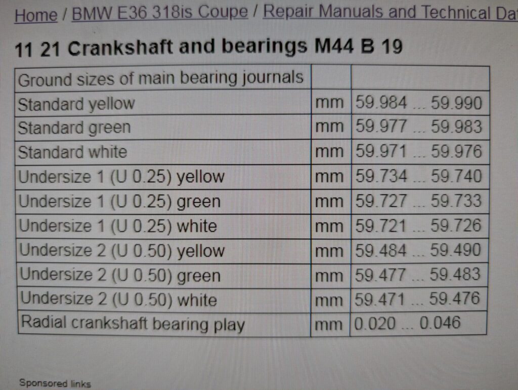 Below are the factory main bearing clearances for the M44 at 0.020-0.046mm clearance. If you’re using an engine builder, you should work with them on recommended clearances.